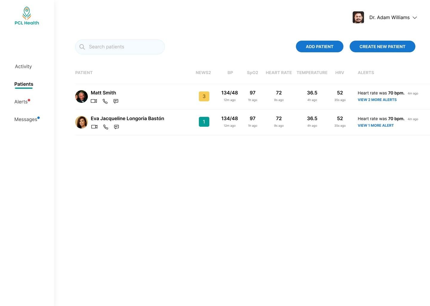 PCL Health is a remote patient monitoring system that connects to the Internet. It monitors vital signs and flags any signs of deterioration in order to help patients manage their health.