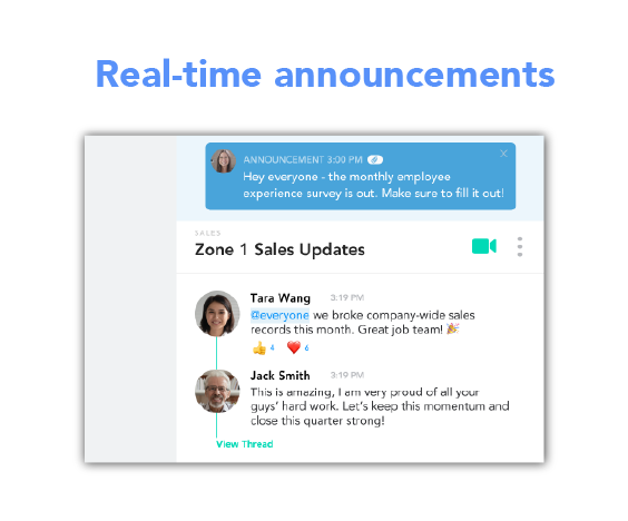 Positive: Fantastic sales engagement. We were coming from a place where our sales leaders were trying to broadcast messages widely and still control the interaction (i.e. who can DM who). We had a mixture of sms based systems that did not provide great transparency into who was participating.