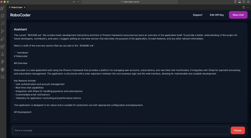 Transform specifications into code utilizing GPT-4 Turbo; RoboCoder simplifies the programming process. By merging GPT-4 Turbo with the APIs of VS Code, we enable it to access and modify files seamlessly. Achieve a professional maternity photoshoot by capturing a few selfies at home, aided by advanced image-generating AI technology. Work together with ChatGPT to develop a detailed plan, then instruct it to "get started." With its intelligence, GPT-4 can open files, explore your codebase, and suggest solutions using the diff tool in VS Code, making coding more efficient than ever. This integration not only enhances productivity but also streamlines the coding experience for developers.