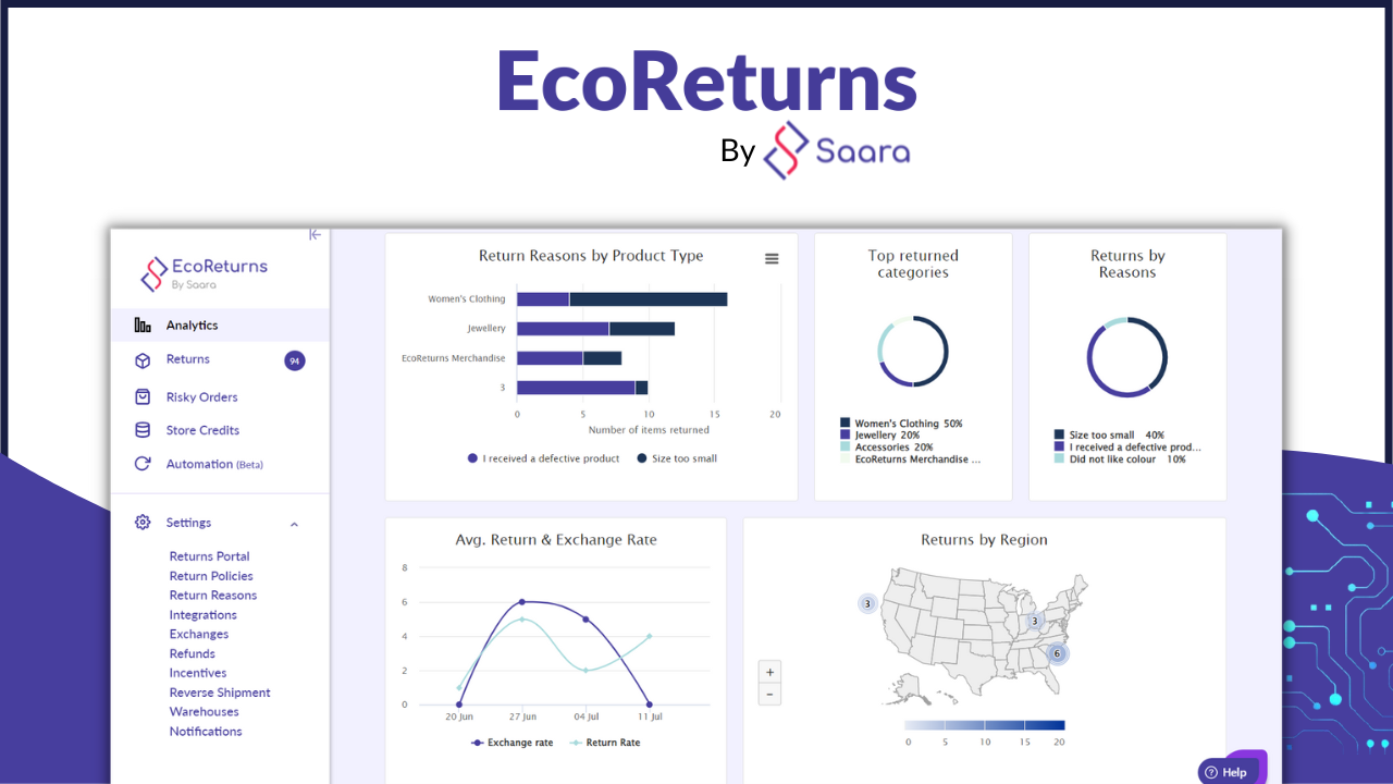 EcoReturns by Saara enables eCommerce businesses to reduce returns by an average of 30% using AI-ML-powered technology. With features such as returns analytics dashboard, incentive engine, risk assessment, and more sellers get to make data-driven decisions to reduce returns and drive the bottom line. EcoReturns lets sellers reduce their carbon footprint by focusing on returns prevention rather than returns management alone.