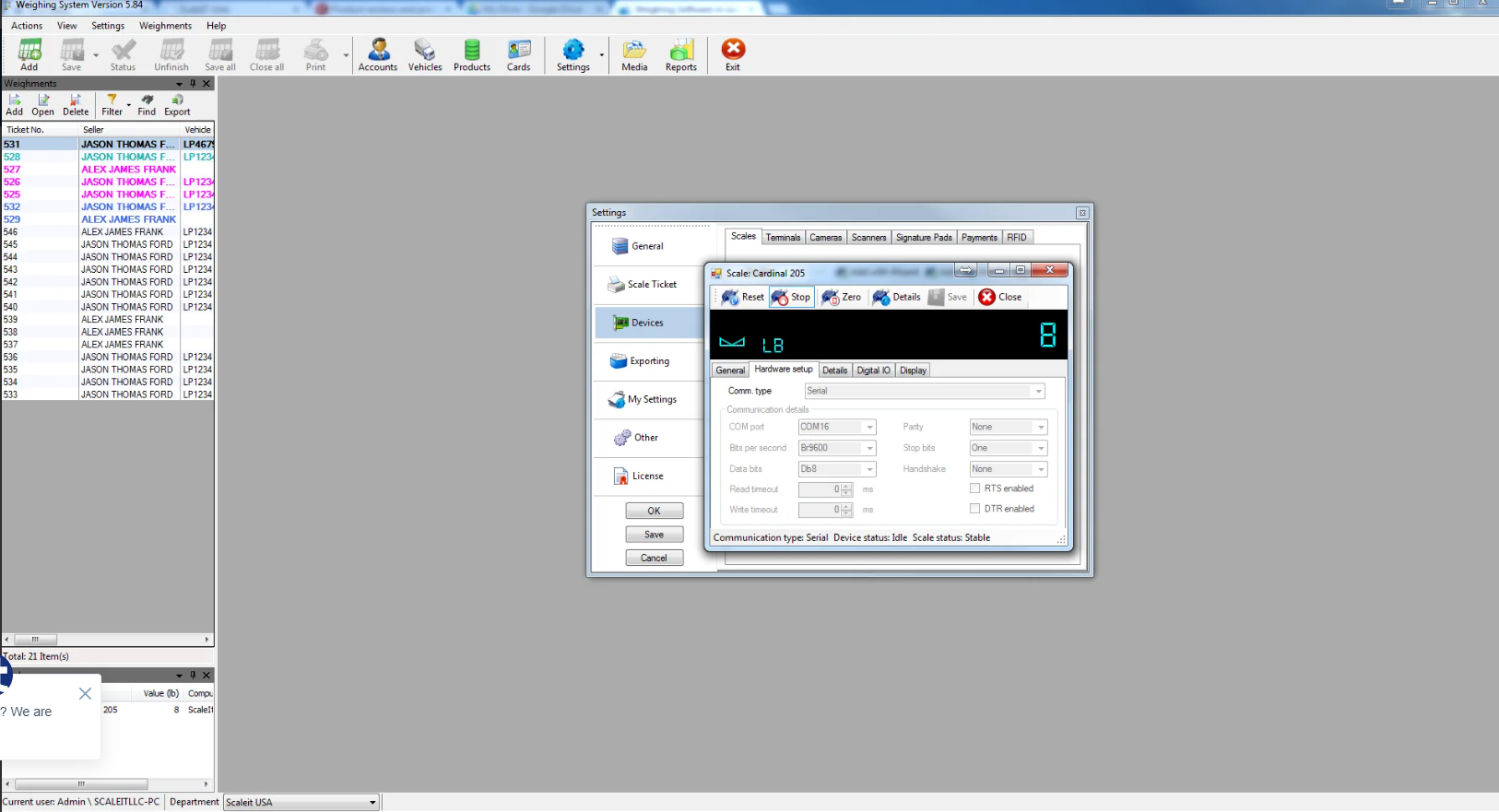 Scaleit W8 ("weight"), is our new concept. Scale software should not be too expensive to purchase, use, support, or upgrade. The license is completely free. W8 is an excellent choice for any size enterprise involved in scrap metal or recycling, aggregate, landfill, and waste, or any other market segment that requires ticketed weight operations.
