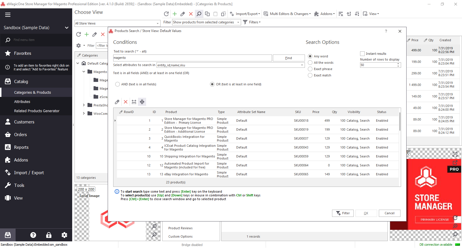 Store Manager for Magento is a Windows-based desktop program that speeds up the administration of Magento-based websites and extends the functionality of the admin panel.
