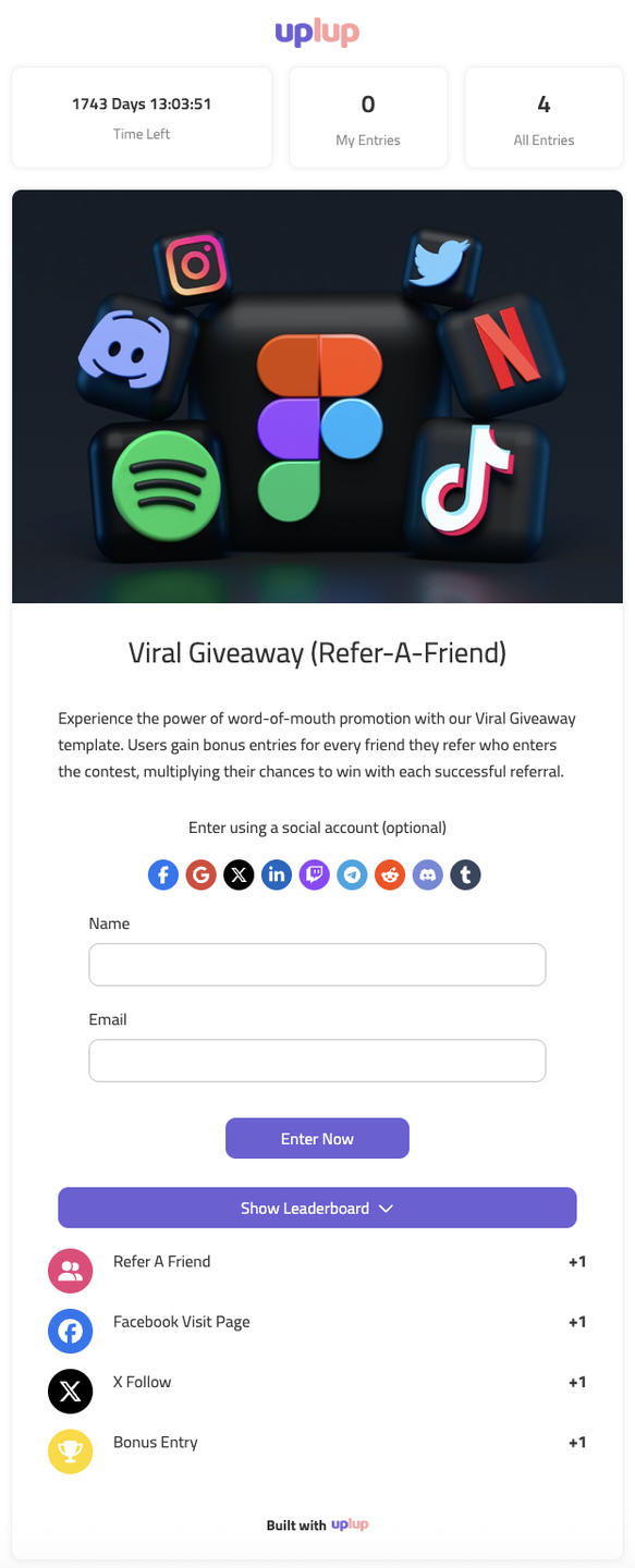 Uplup is an all-in-one AI-powered platform for creating forms, quizzes, surveys, and contests. It’s designed to elevate your brand, attract more leads, boost sales, and maximize visibility. With seamless integration to over 60 social platforms, 50 APIs, 25 CRMs, and our own native API, Uplup connects all the tools you already use.