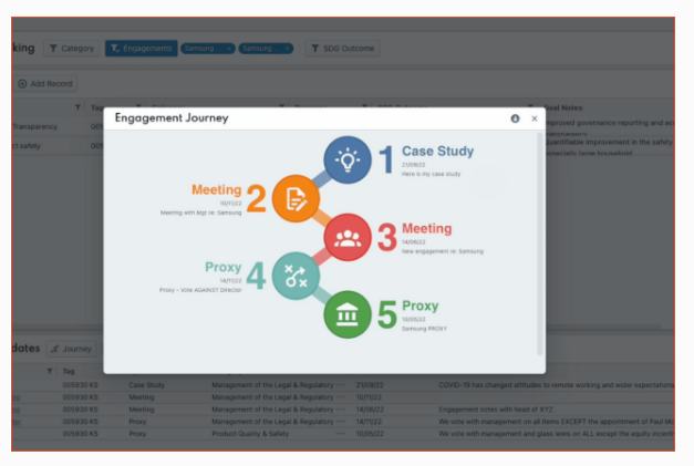 Enhance the efficiency, transparency, and integration of ESG and impact investing efforts with a dedicated ESG engagement tracker designed specifically for asset managers. Simplify the narrative-building process and showcase stewardship with minimal steps through a tailored solution that serves sustainable investing, investor relations, and compliance divisions. Eliminate the pitfalls of data silos and the drawbacks of using spreadsheets for tracking by centralizing both proprietary and third-party information to achieve quicker results. Relieve sustainable investing, investor relations, and compliance teams from the burden of complex reporting requirements. Streamline practices and approval processes to facilitate easy and efficient disclosures and reporting. This solution is ready for immediate implementation and can be customized to align with your specific workflows. As you scale your operations, leverage the only tracker built for asset managers to monitor individual engagement narratives and oversee the complete engagement lifecycle—covering everything from objectives to meetings and proxies, culminating in outcomes—all within a single platform. Generate reports based on portfolios, indicators, timeframes, and any pertinent data points that are crucial to your engagement assessments, ensuring compliance with regulatory mandates while demonstrating your commitment to responsible investing. Additionally, this tool fosters collaboration among teams, enhancing communication and efficiency.