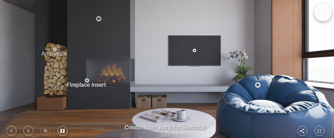 Virtual reality (VR) allows you to model products too large for you to fully model. Show every product in any configuration, using all the space available in the virtual world. Remote or in-person meetings can be conducted using a headset or a browser to create a more immersive experience. The design should be brought to life without any ambiguity between the client's perception and the designer's vision. Clients will appreciate your ability to use technology and elevate your pitches. To create engaging marketing assets, share your projects on social media. Yulio makes it easy to create VR projects. Yulio can create VR Projects using CAD, 360 photos and Cloud Rendering. Yulio's built in features allow you to take your VR Projects to the next level by creating interactive hotspots. Yulio's presentation modes allow for immersive experiences in both remote and in-person meetings.
