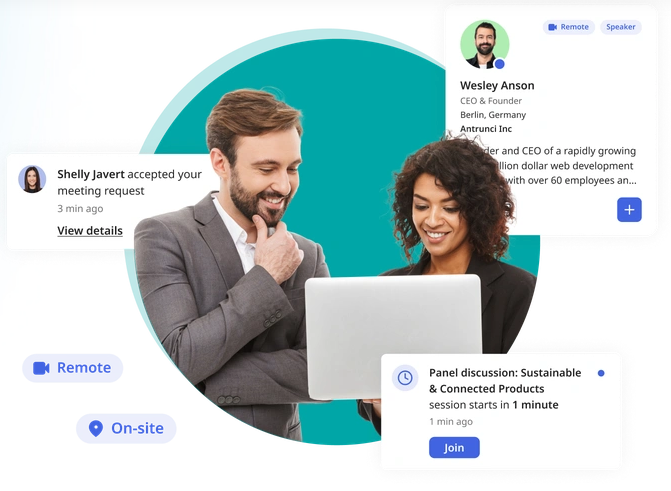 All-in-one event management software for virtual, hybrid, or physical events, specialized in b2b Matchmaking. Using years of experience, b2match has created an all-in one event management platform that can handle your entire event workflow. We know that b2b matching is the best way for event participants to connect and collaborate. We understand that an event management platform is not enough. You also need a trusted partner. Our customer success managers will work with you to make sure your events are a success. Events are for people. People have expectations. It is essential to meet their expectations and maximize satisfaction through goal-oriented b2b matching.