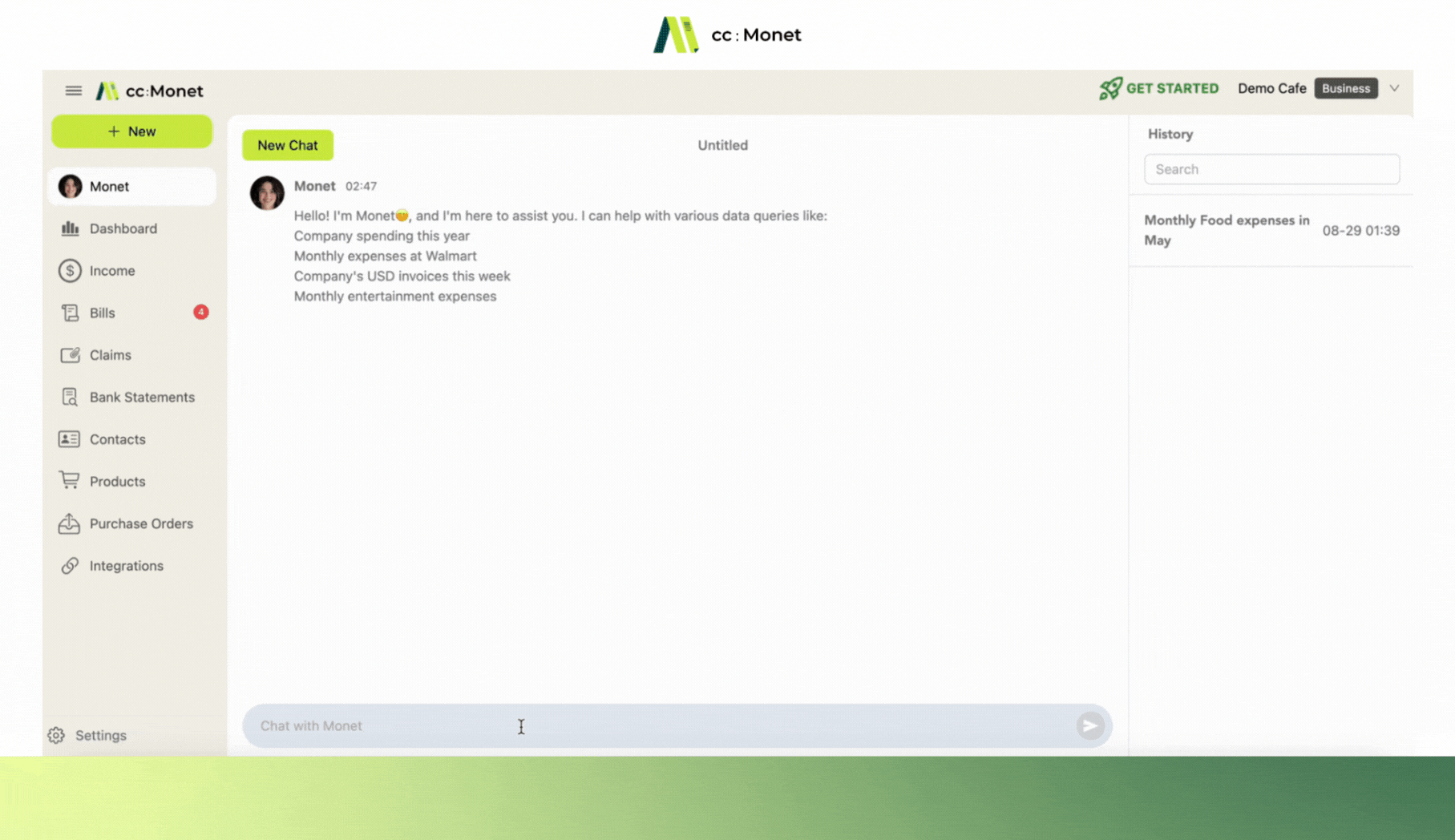 AI Finance Assistant cc:Monet automates invoices, streamlines employee claims and provides actionable insights for smarter business decision-making. Handle everything with ease, from invoice scanning to smart categorization and employee claim submission.