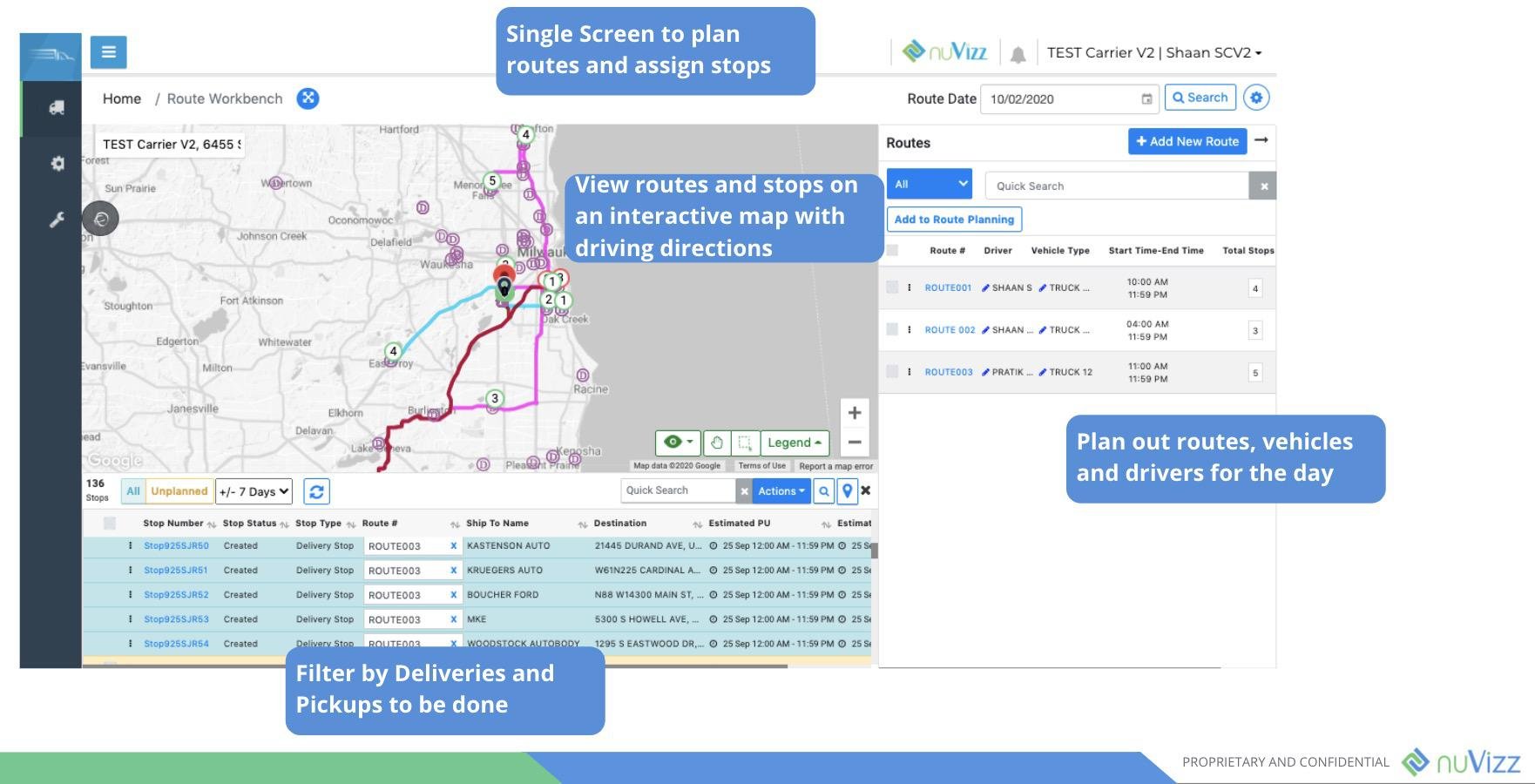 nuVizz, an AI-based cloud TMS platform for delivery management and customer experience. It helps businesses of all sizes to manage the movement of goods and services throughout their business network. nuVizz TMS platform uses the best-in-class AI algorithms to reduce transportation costs and maximize customer satisfaction. The platform offers the best mobile app for drivers to perform deliveries and capture ePOD. The platform offers updates to customers via event alerts, live tracking, and live tracking. For long term transportation planning the platform offers a strategic territory planning module.